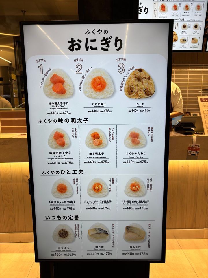 ツナマヨや高菜、シャケやサバ、鶏そぼろなど