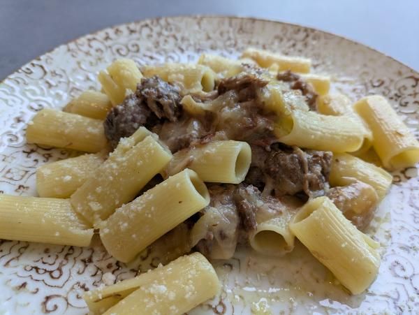 味付けはシンプルですが、ほろほろとやわらかいお肉と風味が口いっぱいに広がり大きめのパスタとよく合います!