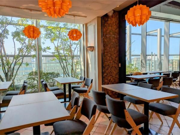 大きな窓ガラスいっぱいにひろがる9階からの絶景がむかえてくれる