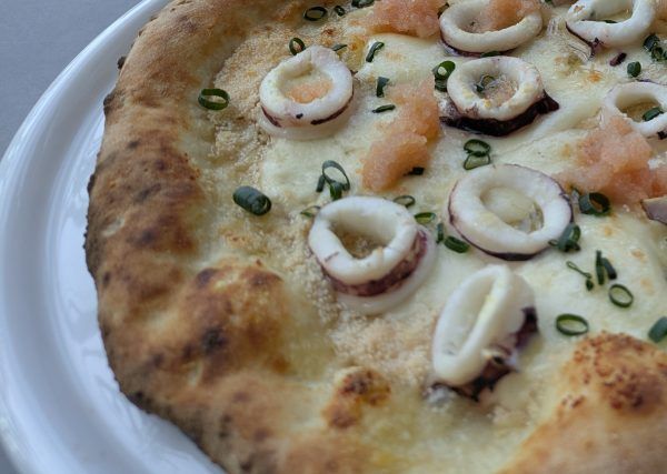 福岡ご当地メニュー「明太子とイカと旬の葱のピッツァ」 2,090円(税込み)