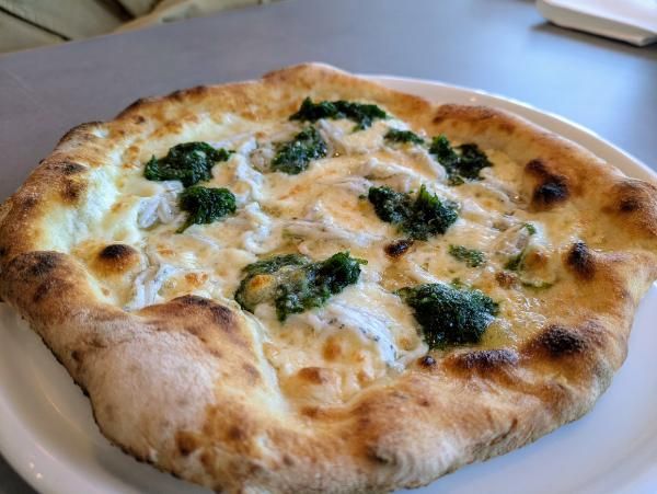 東京・白金ISOLAの伝統的ピッツァ「ビアンケッティ」 2,310円(税込み) モッツァレラチーズ・生シラス・生のりのトッピング