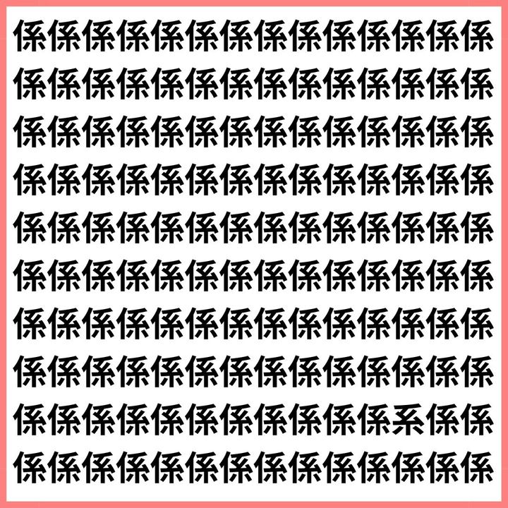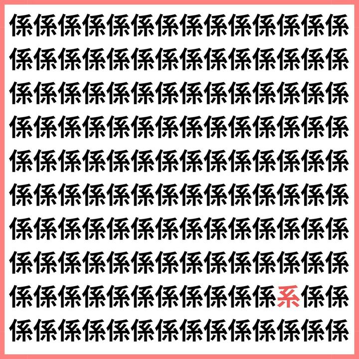 係の中に仲間外れ【1文字だけ違う】漢字間違い探しで脳トレ、何秒で見つかる?