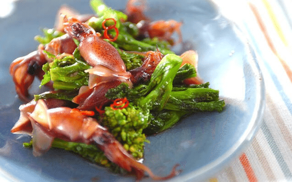 春が旬の食材を組み合わせた絶品料理。ホタルイカの紫色と菜の花の鮮やかな緑が合わさり、見た目も華やかです。食卓が明るくなること間違いありません。おつまみとして食べるなら、日本酒や白ワインと合わせるのがおすすめです。
