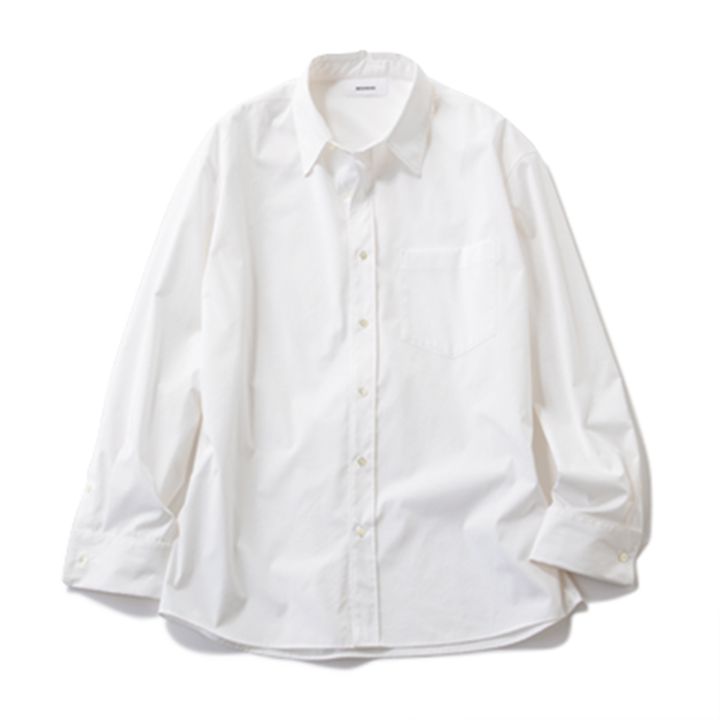 着るシーンを選ばない白シャツは、レイヤードした時の“さし白”で、コーディネートをこなれさせる役割も。¥18,700(MIESROHE)