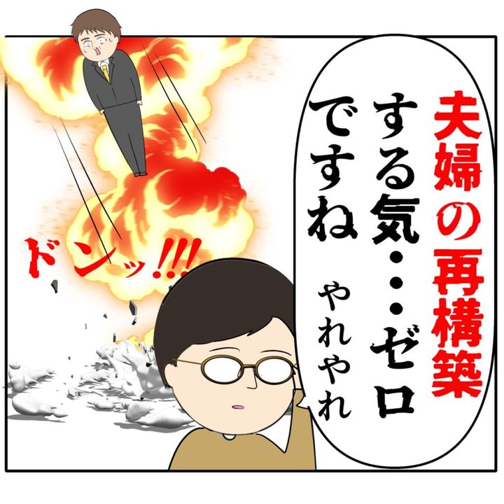 「夫婦の再構築する気・・ゼロですね。やれやれ」ろみ緒さんの頭の中では、ジュリ実さんの夫が呆れたようにそう言っていました。