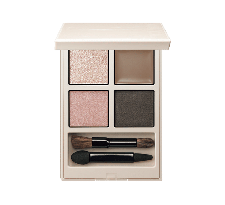 EYE: 【a】( perseのレンズ)を入れたら、【b】(アディクションのパレット)の右上のセミマットなグレージュを薄くアイホールと涙袋にチップで塗る。ブラシに【b】の右下のチャコールグレーを取り、上下まつ毛のキワに入れる。【c】(シャネルのペンシルタイプのシャドウ)を、下まつ毛のキワにのみ重ねて。【d】(NARSのマスカラ)で眉頭を上向きに整えて完成。