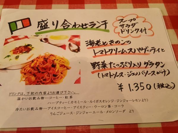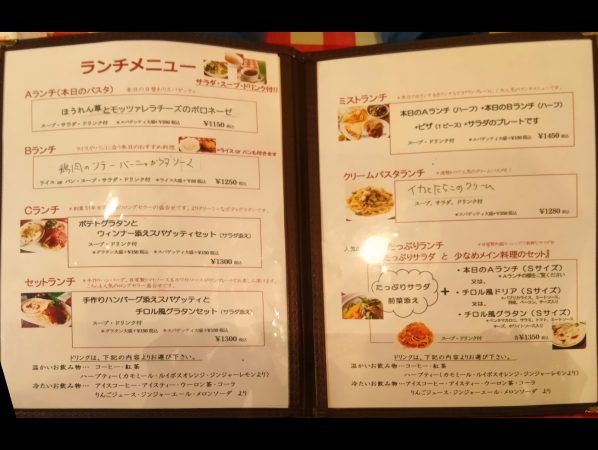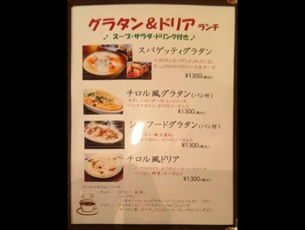 スパゲッティにピザ、ハンバーグにグラタン、お肉にお魚、ドリアなどなど、メニューが豊富! その上、どのランチにも、スープ・サラダ・ドリンクが付いてくる! しかも、パスタ・グラタン・ライスは大盛りにもできます! なんて素晴らしすぎるサービスなのでしょう♪♪
