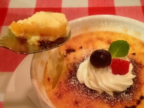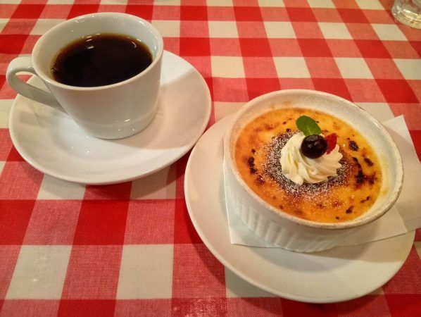 キャラメリゼをパリパリ割るのって楽しいですよね。カスタードはほろ苦キャラメル味でとろ〜り。甘みと苦味の絶妙な味わいが最高!ランチセットのコーヒーとともに甘美なひとときです。