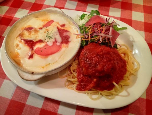 ハンバーグにパスタ、グラタン、あれもこれも付いて1300円【チロル】