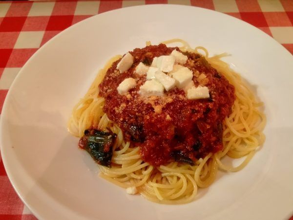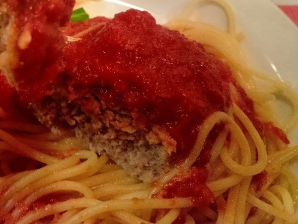 手作りハンバーグはやわらか系で、口の中でとろけちゃう。これはもう優勝だわ。ジューシー肉汁と相まって、流れるように食べ進んでしまいます。スパゲッティも自家製トマトソースを絡めて、これまた最高♪