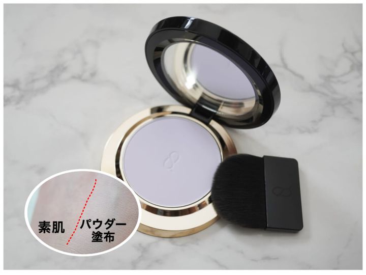 筆者が現在、夕方のくすみ対策で取り入れているのが、スックのラベンダー系のパウダーです。その名のとおりソフトマットな質感で、さらりとした清潔感のある上品な肌に整えます。