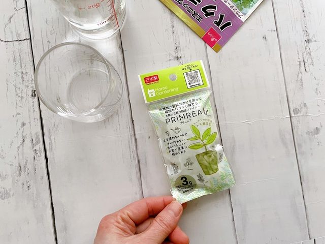 プリムレアの使い方はとっても簡単。基本的に水と種だけでOKです。ダイソーのプリムレアには種は付いていません。種まき時期、育て方などは、購入した種の説明書などでご確認ください。