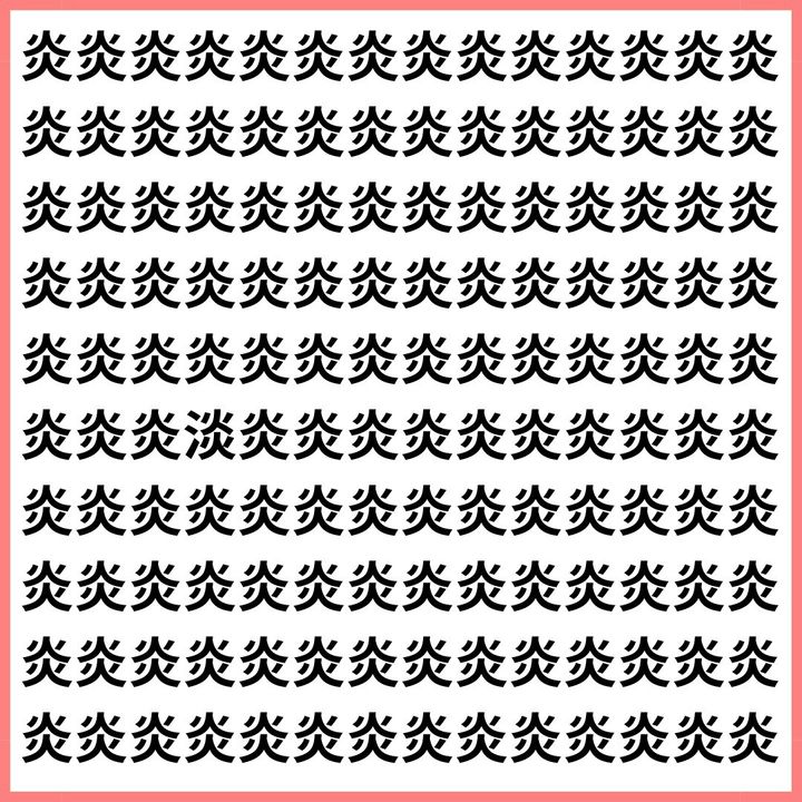3. 炎の中に混ざっているのは?【1文字だけ違う】漢字間違い探しで脳トレ、何秒で見つかる?