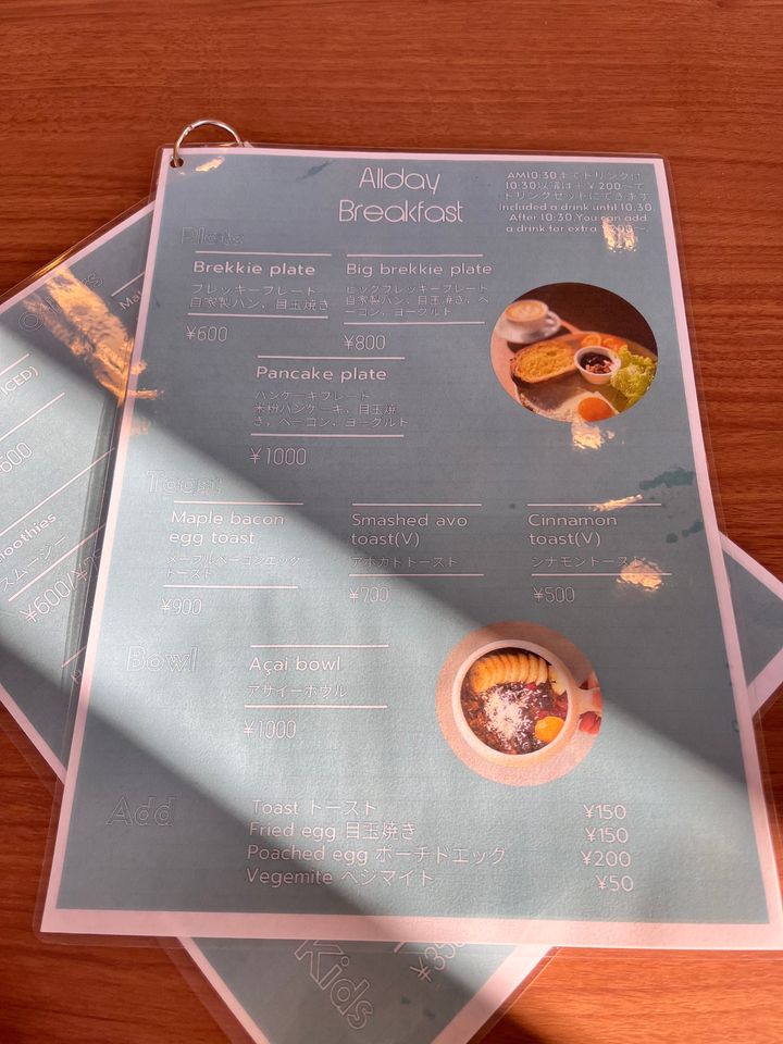カフェのオーナーさんはオーストラリアへのワーキングホリデー経験があり、オーストラリアのカフェ文化を取り入れたメニューになっています。