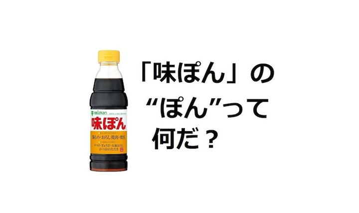 「味ぽん」の製造元「ミツカン」によると、味ぽんのぽんは、柑橘類を表すオランダ語の「ポンス(pons)」に由来する言葉だそう。柑橘果汁に醸造酢を加えた「ポン酢」をしょうゆで味つけした、「味付けポン酢」。それを略して、「味ぽん」と呼んでいるとのこと。