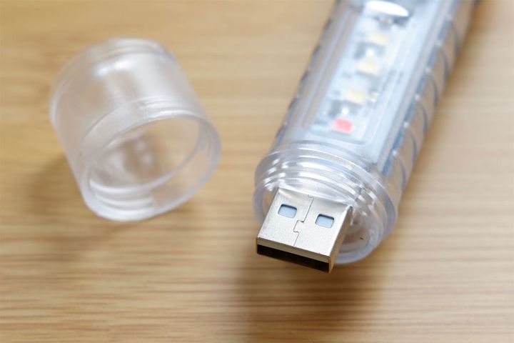 ライト発光部の反対側にあるキャップを外すと、USB Type-Aの端子が出ます。