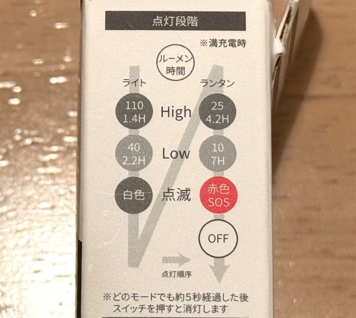 330円と安価なのに、6種類と豊富な点灯モードがあるのに驚き!