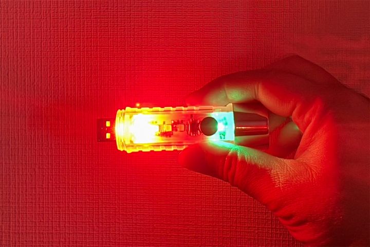 最後は赤色SOSモードです。こちらは本体側面にある赤色LEDが点滅します。