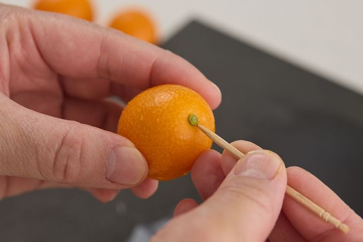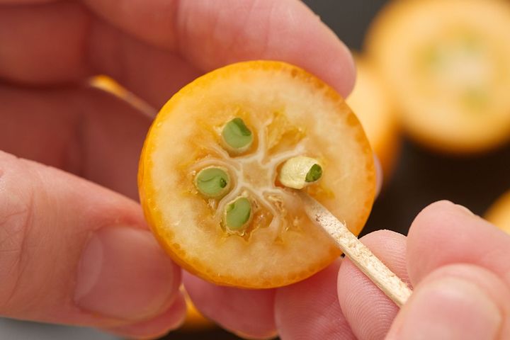 1.きんかんはへたを取り、よく水で洗う。横半分に切って種を取り除く。