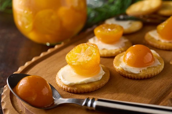 でき上がったきんかんの甘露煮は、そのまま食べてもひんやりと甘くとてもおいしいです。もしアレンジするのなら、クリームチーズとともにクラッカーにのせてカナッペにするのもおすすめ。小さく刻んでバニラアイスに添えて、混ぜながら食べるのもおいしいですよ。