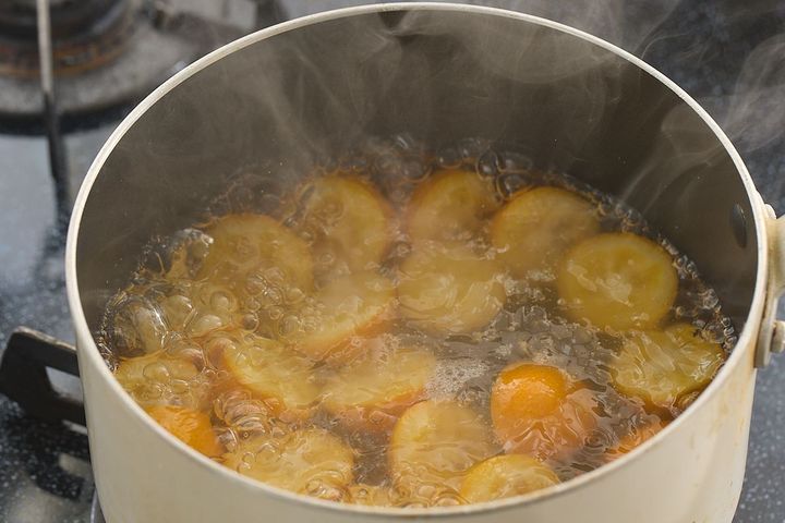 きんかんの甘露煮というと、ゆでこぼす(ゆで汁を捨てる)レシピが広く知られていますが、今回はそれを行わないレシピです。
