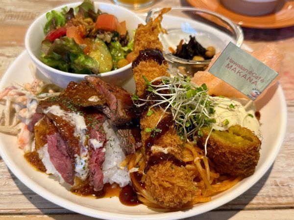 “マカナのカフェ飯”は種類豊富で、3種のミニ丼が食べられる「レディースミニ丼セット(税込1,210円)」や「ローストビーフ丼(税込1,400円)」、ハワイの定番「ハンバーグロコモコ(税込1,320円)」などどれも美味しそうで食べたいものばかり
