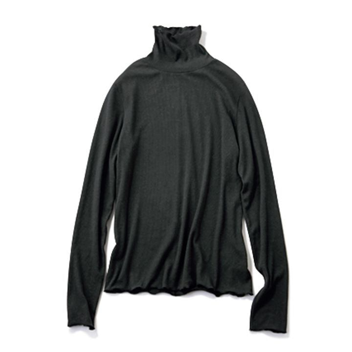着こなしの奥行きと暖かさを両立してくれる、ハイゲージの心地よい素材をセレクト。¥5,990(アンフィーロ/オンワード樫山)