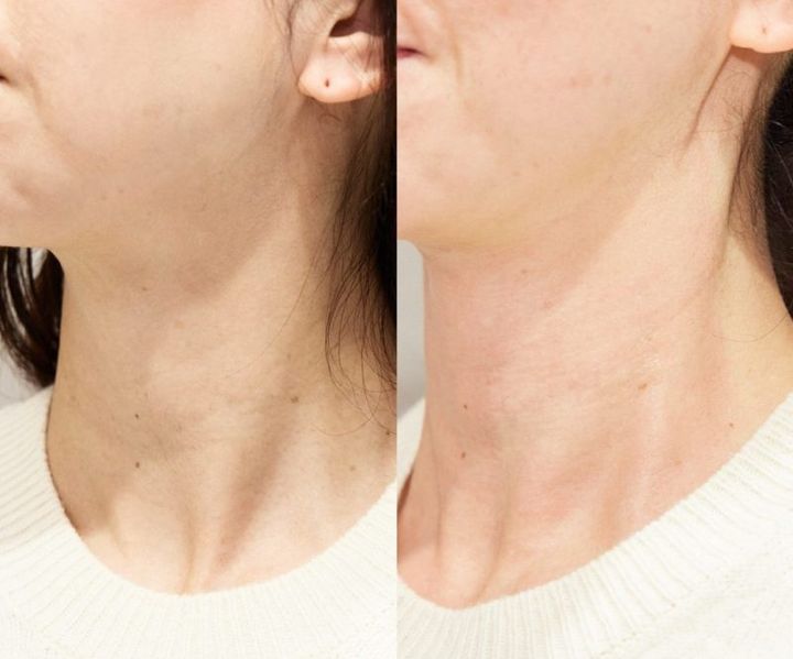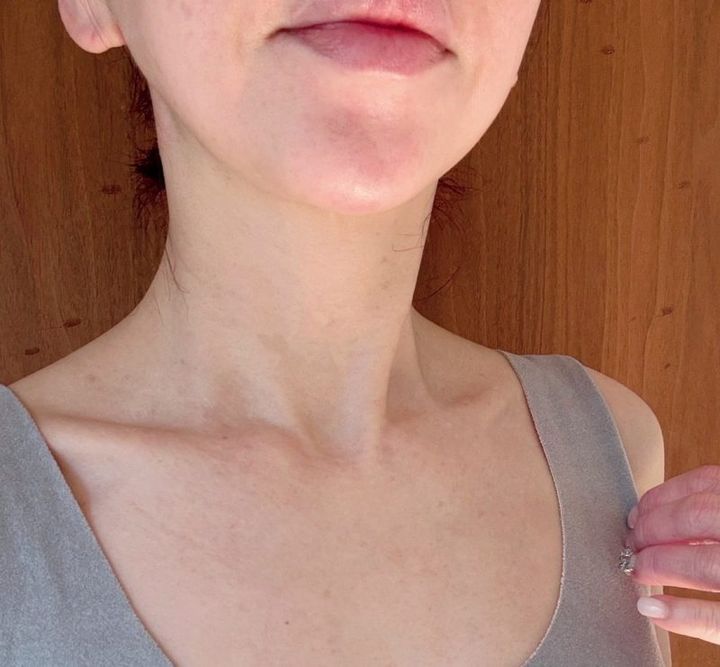 「次の日、うすく赤い点々がありましたが、タートル着てしまえば良いですし、隠す必要ないくらいのあまりわからない程度でした。乾燥というか、ちょっと痒みがあったのでかかないように我慢しましたが、一週間もしたら、首にツヤがでできて、若かりし頃の首になりました。嬉しくて、友達に見せたらみんな興味深々でした! 写真で笑顔でも首がしわしわ、、という事で悩むことがなくなりました」(ライター片山)