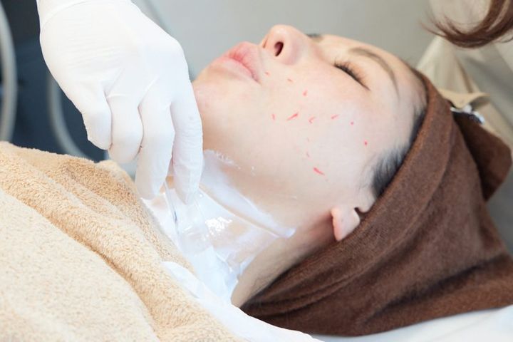麻酔クリームをサーマニードルを当てる部分に塗り、20分おきます。