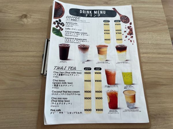 タイ茶葉を使ったミルクティーやタイ厳選豆コーヒーなども味わえます。タイ専門店ならではですね!