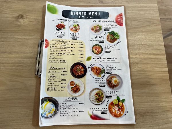 アラカルトメニューで種類も多いです!パッタイやトムヤムクンスープ、グリーンカレーなど聞いたことのあるメニューも多いのはうれしいですね!見たことのないメニューでも日本語での説明もあるのでわかりやすいです。