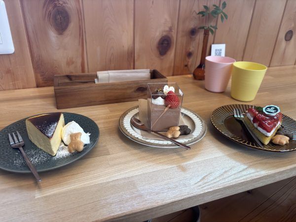 バスク風チーズケーキとチョコムースといちごのタルトです。