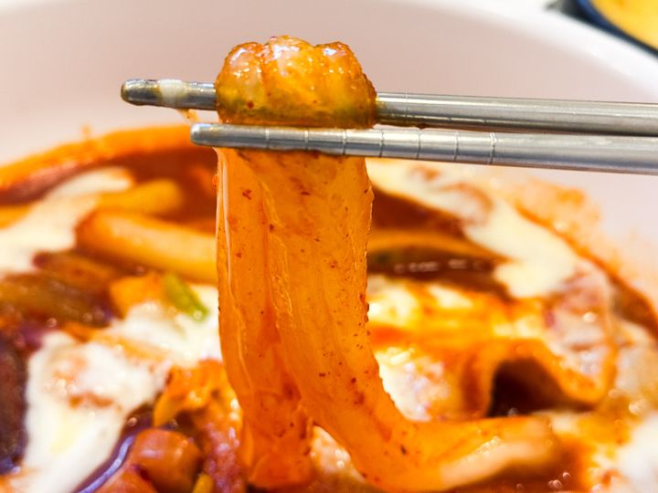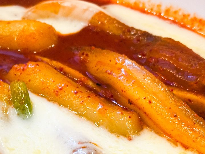 トッポッキにはデフォルトでチーズがかかっており、真っ赤な見た目が辛そう……。