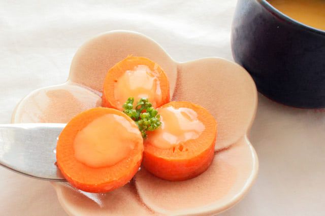 にんじんが甘くて濃い味わいなので、「ブールブランソース」の酸味のよさがそれほど感じられず、思ったよりもソースのよさが伝わらない…。大根などの淡泊な野菜か、逆にブロッコリーなど、味の強い野菜の方が合うのかも。