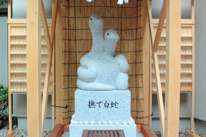 白蛇三大聖地の一つとして知られる蛇窪神社は、「白蛇大神」と蛇窪神社の守護神を称えられる「白蛇龍神」が一緒に祀られている神社。「巳が龍つ(身が立つ)」=身立出世の願いが叶うと、多くの参拝者が訪れています。