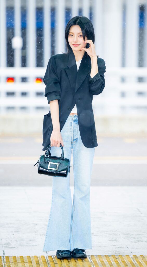 3. 【ITZY イェジ】フレアデニムで知的な印象に!春のカジュアルな空港ファッション