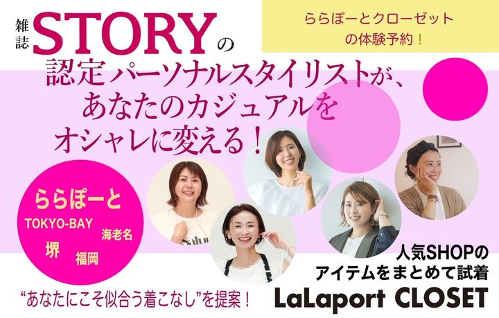 昨年12月からは大阪のららぽーと堺でも始まりました。全国4か所のららぽーとで、STORY認定スタイリストたちが「あなたのカジュアルをオシャレに」変えてくれます!