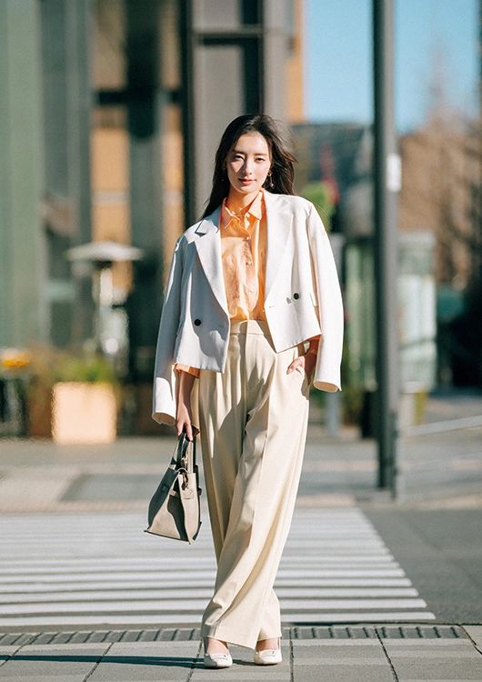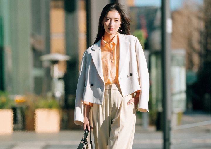 春はまろやかなベージュパンツで一気に華やぐ通勤服の完成