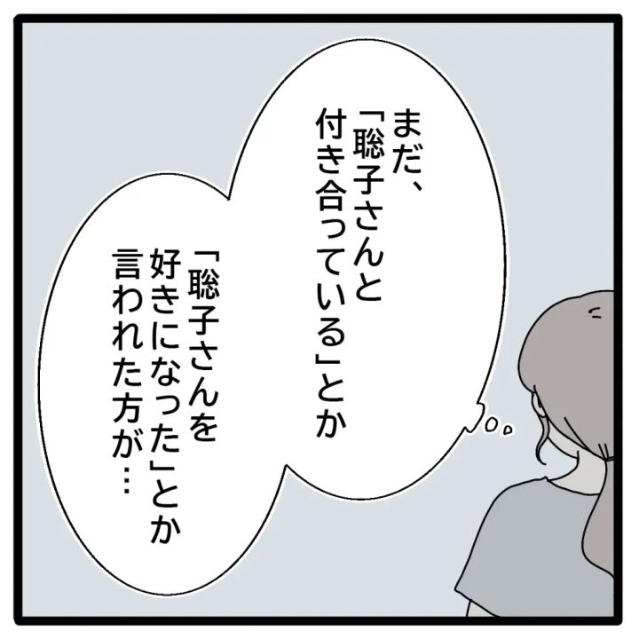 正志さんの何とも言えない答え方に、「まだ、『聡子さんと付き合っている』とか、『聡子さんを好きになった』とか言われた方が・・」とモヤモヤがおさまりませんでした。