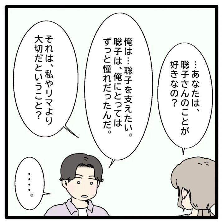 理恵さんが「それは、自分の家庭をほったらかしにしてまですることなの?」と言うと、「だって聡子が困ってるから・・」正志さんの言葉を聞いた理恵さんは、「正志が何したいのか全然わからない」と心の中で呟きました。