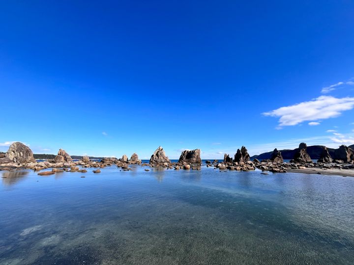海に浮かぶ40ほどの岩が特徴的です。マグマの上昇によって自然にできたものなのだそう。