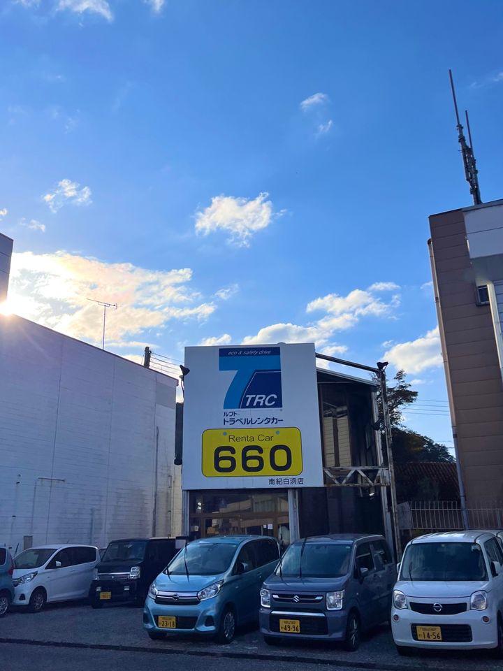 白浜駅を出て左手側にあるトラベルレンタカー660は12時間で3850円ほどで借りられます。