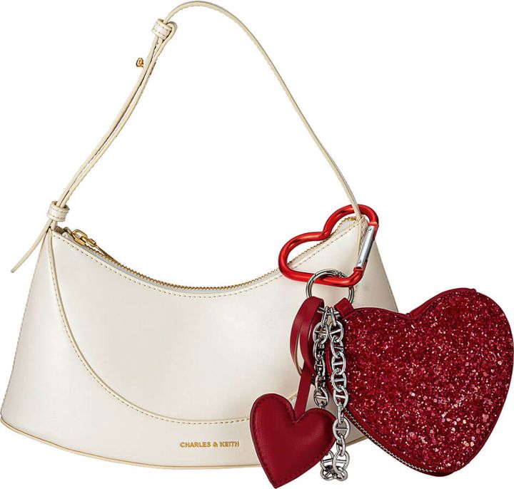チャームは金具までハート尽くめ! 白×赤の組み合わせがラブレターのようで、ハートの存在感も高まって申し分なし♡