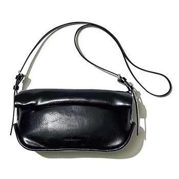 ルーズな服装の引き締めや、コンサバ感の軽減など、スタイリングの調整役として活躍するミニバッグ。難点と思われがちな収納力の低さを感じさせない“マチのある形”に注目。