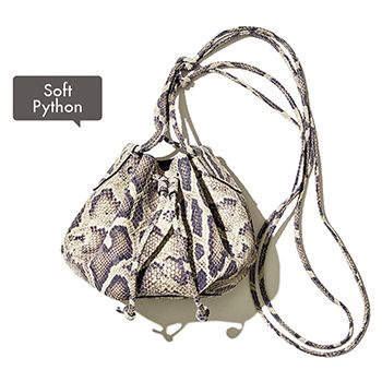 パイソン巾着バッグ(15×15×12)/バナナ・リパブリック 主張が強くなりがちなパイソンも、マットな質感でマイルドに。中にはカードサイズのポケットつき。