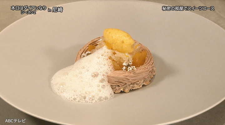 ラストは、紅茶とショコラ、柑橘類のデザートだ。ヘーゼルナッツとメレンゲで作った焼き菓子に、デコポンのコンフィチュール、アールグレイチョコレートクリーム、デコポン、バンペイユ、オレンジ果汁とデコポンのマーマレードなどで作ったアイスクリームをオン。その上に、アールグレイとミルクを泡立てたものをかけて完成すると、ダイアンは「オシャレ~!」「ホンマ美しい」とうっとり。もちろん味も格別で、「これはおいしいわ!」「(柑橘とショコラの)相性いいっすね!」「これは見事!」とうなった。