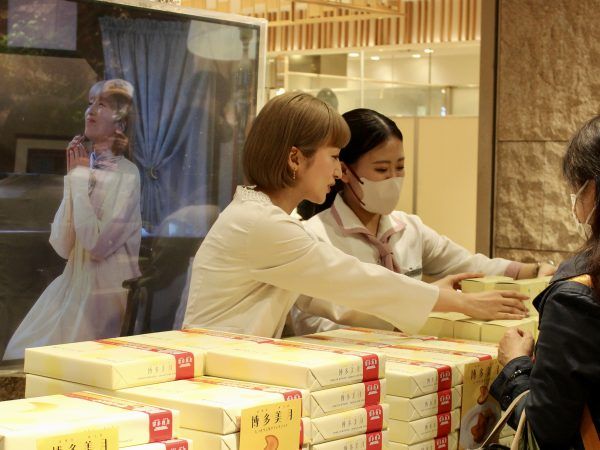 今回のトークショーでは、『博多美月』の魅力が存分に紹介され、福岡の新たな名品として注目を集めそうです。梅田彩佳さんの明るいトークも相まって、商品のこだわりや美味しさがより一層伝わるイベントとなりました! トークショー後は梅田彩佳さん本人の直接販売も実施されましたよ。
