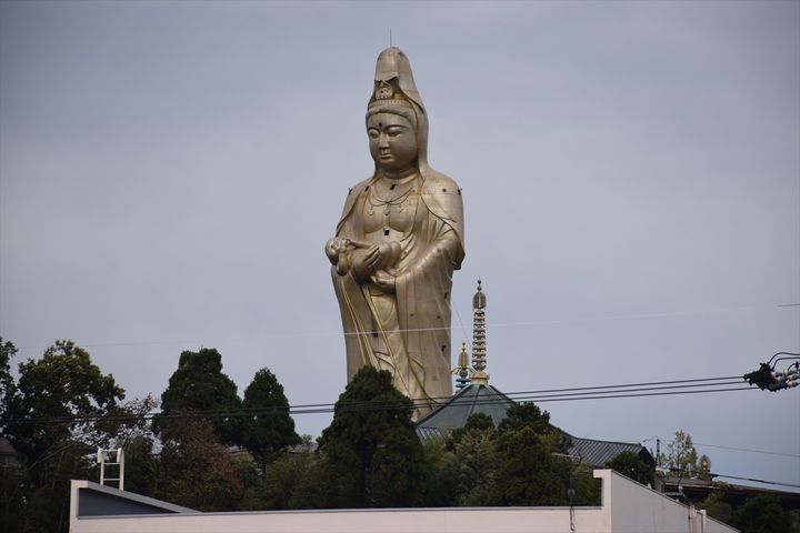 石川県加賀市にある「加賀大観音」は、高さ73mの観音像です。元々は、温泉施設や遊園地、美術館を併設したテーマパーク内に建てられたものですが、バブル崩壊後に母体の会社が倒産。一帯の土地は売買が繰り返され、現在では観音像のみがその地でそびえ立っています。