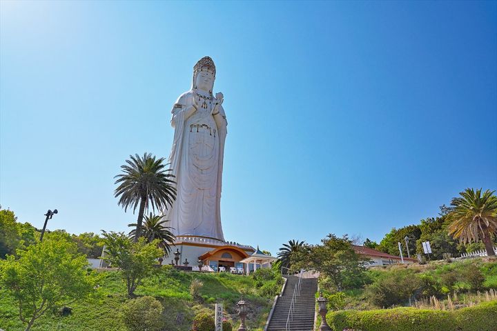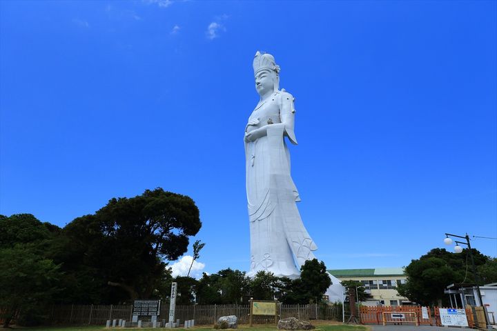 香川県の小豆島(しょうどしま)に建つ「小豆島大観音」は、1994年に全国の檀信徒の寄進によって建立されました。正式な高さは公表されていませんが、50m以上の高さがあるとされています。その美しさから「世界一美しい観音様」とも称され、フランスの「アークARCプラス国際作品コンテスト」で第一位を獲得しています。