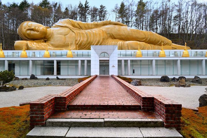 北海道札幌市南区にある「札幌涅槃(ねはん)大仏」は、「舎利山佛願寺大涅槃聖堂」にある全長45mの涅槃大仏です。涅槃仏の前には、京都の建仁寺や愛知万博の日本庭園を手がけた造園家・北山安夫氏が設計した「浄土庭園」が広がり、美しい景観を堪能できます。